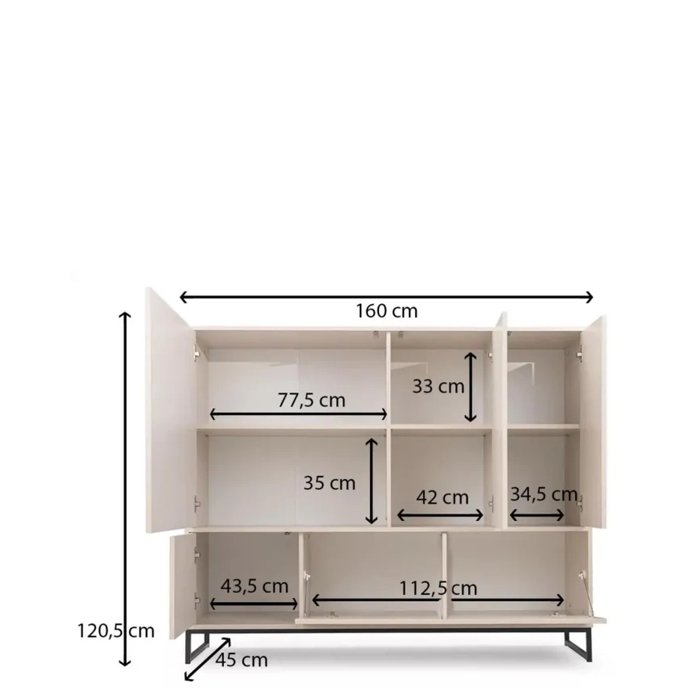 Komoda GENEWA w kolorze beżu piaskowego to połączenie elegancji i praktyczności, które odmieni charakter każdego wnętrza. Nowoczesna forma, matowe wykończenie oraz funkcjonalne wnętrze sprawiają, że mebel idealnie sprawdzi się zarówno w salonie, jak i jadalni czy gabinecie. System push-to-open podnosi komfort codziennego użytkowania, a pojemne półki i szafki pomieszczą wszystko, co chcesz mieć pod ręką, ale nie na widoku.