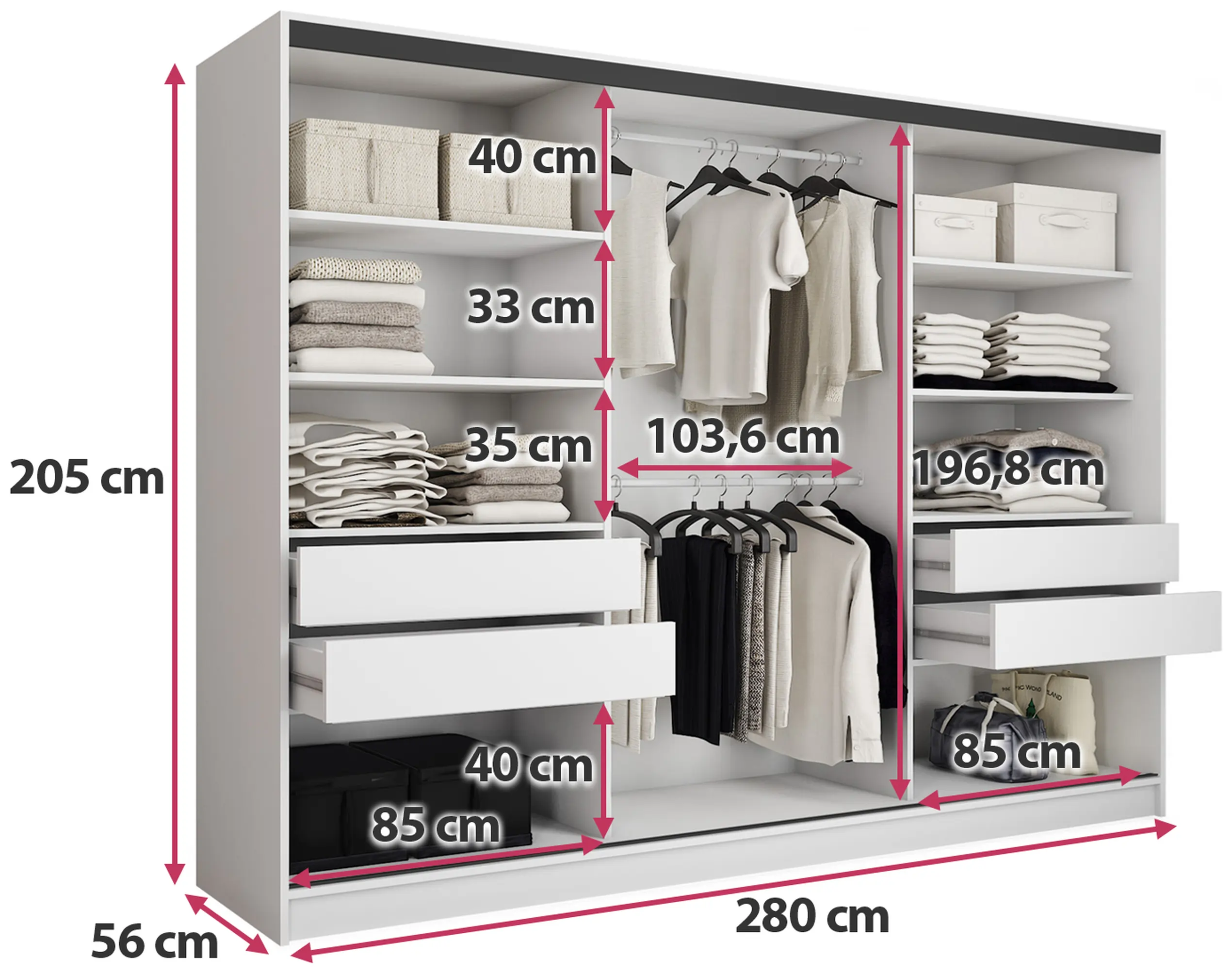 Wybierając szafę przesuwną, stawiasz na nowoczesność i praktyczność. Szafa przesuwna LOFT o szerokości 280 cm z lustrem to perfekcyjne rozwiązanie dla każdego wnętrza, łączące w sobie elegancję i funkcjonalność. Przyjrzyjmy się bliżej jego wyjątkowym cechom.
