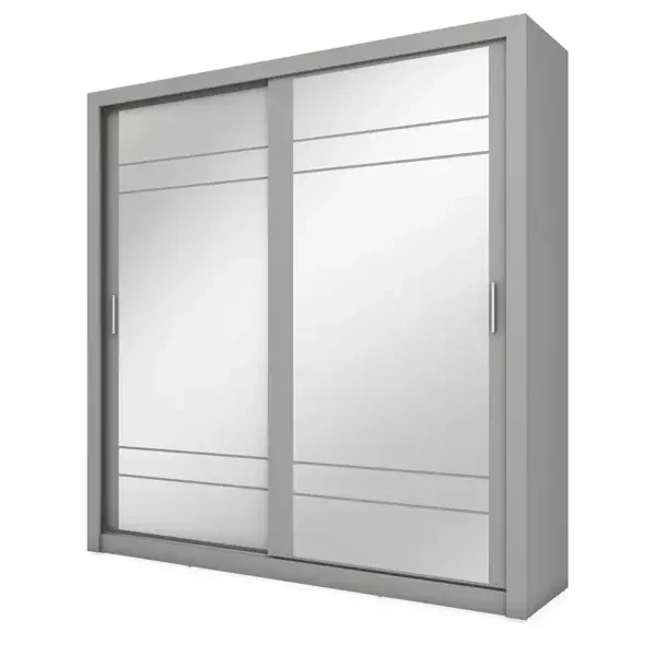 Szafa jest b.ładna, a lustro jest piękne duże. Niestety jedne drzwi są porysowane.Brakowało dużo śrubek.Prowadnice są za szerokie bo jest duża przestrzeń między drzwiami a lustrem i z boku widać zawartość szafy.Koniecznie trzeba dokupić szerokie szczotki przeciwkurzowe. Ogólnie polecam zakup tej szafy.