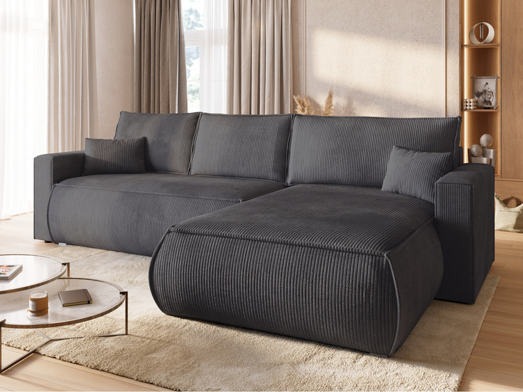 Dodatkowo sztruksowy narożnik ARTUR jest wolnostojący – czyli obity tą samą tkaniną z każdej strony, dzięki czemu może być ustawiony w dowolnym miejscu salonu, prezentując się znakomicie z każdej perspektywy.