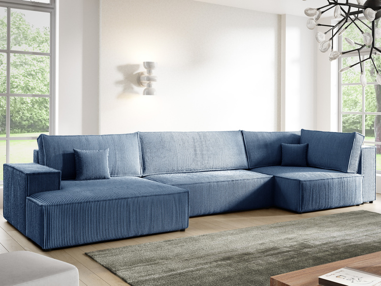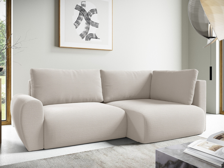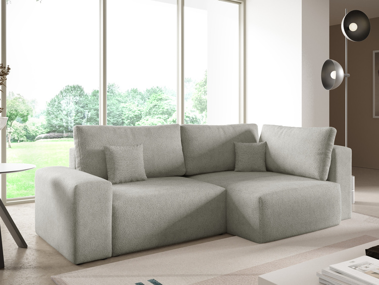 Sofę narożną można dostosować do lewo- lub prawostronnej konfiguracji, co umożliwia idealne dopasowanie do kształtu i wymiarów pomieszczenia. Uniwersalność i adaptacyjność w jednym.