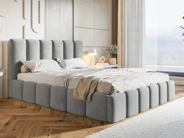 - Zagłówek z ozdobnymi przeszyciami – elegancki detal, który dodaje łóżku nowoczesnego charakteru i zapewnia wygodne oparcie podczas wypoczynku.