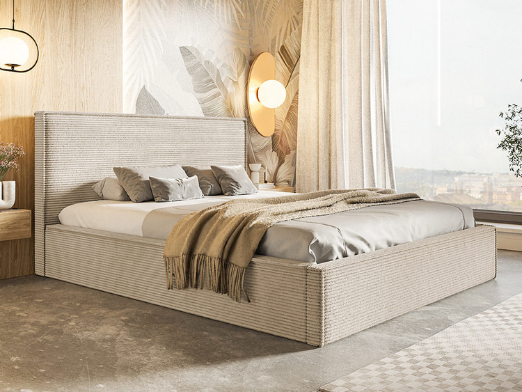 ✅ Nowoczesna forma – zaokrąglone krawędzie i subtelny beż nadają sypialni lekkości i elegancji