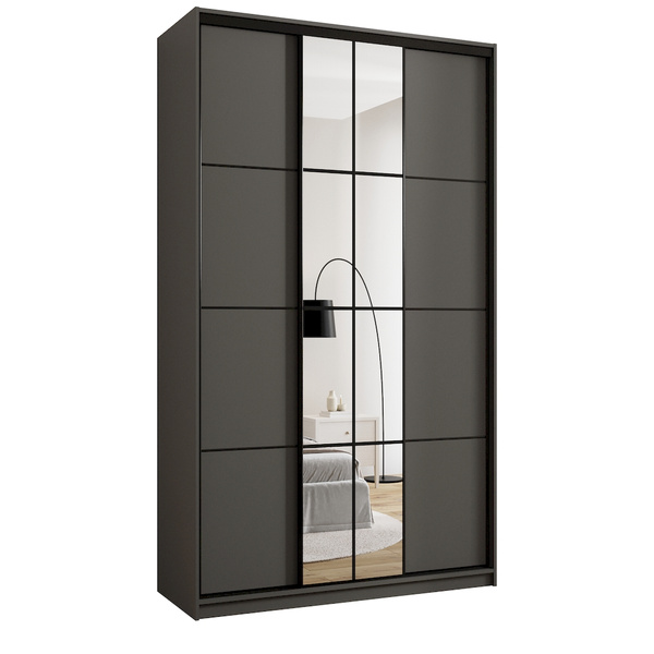 Grafit szafa przesuwna z lustrem i drążkami 280 cm EDGE MAX