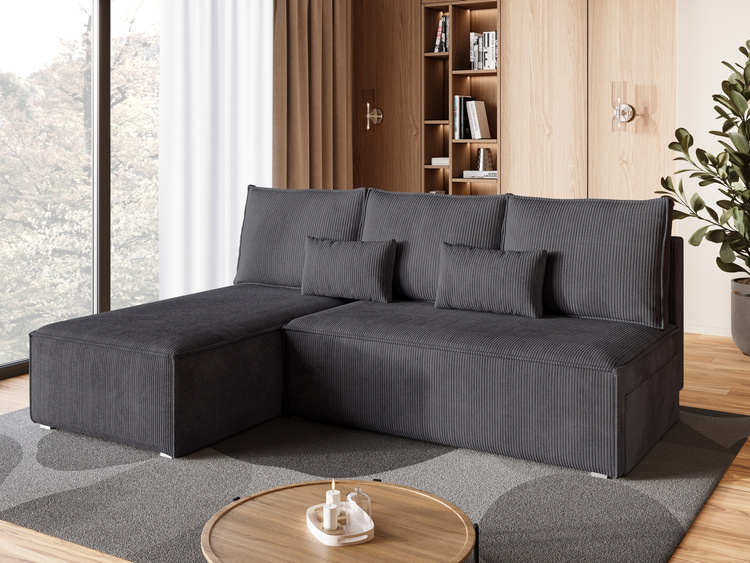 Narożnik posiada uniwersalną konstrukcję, która pozwala zdecydować o umieszczeniu wysuniętej części mebla (otomany) po lewej lub prawej stronie dopiero podczas montażu.