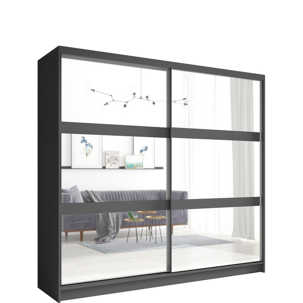 Grafitowa szafa przesuwna z lustrem do sypialni 180 cm EDGE MAX