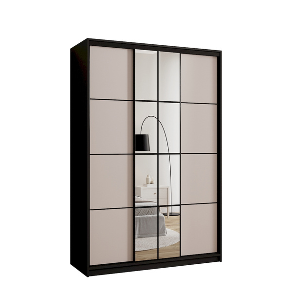 Szafa przesuwna o szerokości 180 cm to doskonałe rozwiązanie dla osób, które potrzebują dużej przestrzeni do przechowywania, nie rezygnując przy tym z nowoczesnego designu. Wyposażona w stalowy system przesuwny w eleganckim czarnym kolorze, szafa zapewnia płynne otwieranie i zamykanie drzwi, a jej minimalistyczny wygląd świetnie wpisuje się w modne aranżacje wnętrz.