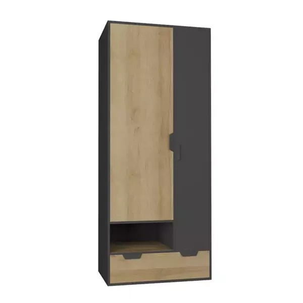 Obrzeża szafy wykończone są trwałą okleiną PCV, co zapewnia ochronę przed codziennym zużyciem i uszkodzeniami. Dzięki temu szafa będzie zachowywać swój nowoczesny, elegancki wygląd przez długie lata użytkowania.