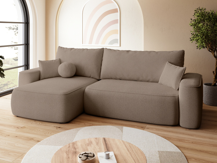 Sofę narożną można dostosować do lewo- lub prawostronnej konfiguracji, co umożliwia idealne dopasowanie do kształtu i wymiarów pomieszczenia. Uniwersalność i adaptacyjność w jednym.