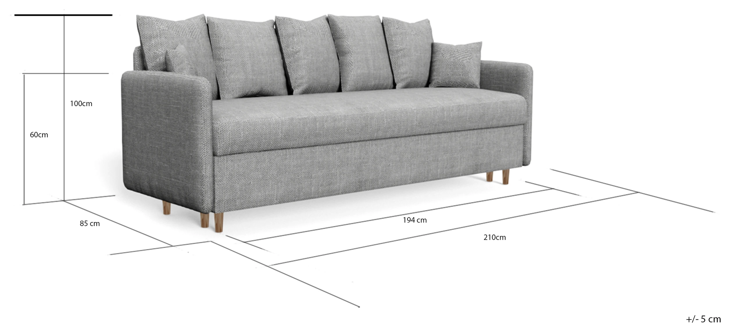 - Kanapa posiada funkcję spania o wymiarach 140x194 cm. Za jej łatwe rozkładanie odpowiada automat DL, wspomagający unoszenie siedziska, dzięki czemu przekształcenie sofy w miejsce do snu jest łatwe i nie wymaga wysiłku.