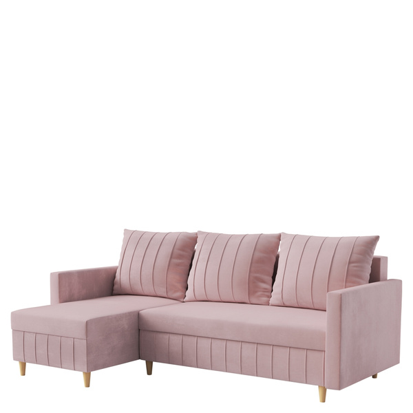 - Konstrukcja sofy składa się z płyty wiórowej, płyty MDF oraz drewna sosnowego. Takie połączenie to gwarancja solidności i trwałości na długi czas.