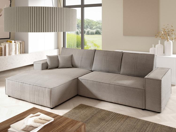 • Możliwość wyboru orientacji - Narożnik posiada zaczepy montażowe, które pozwalają na montaż narożnika z leżanką (wysuniętą częścią) narożnika po lewej lub prawej stronie.