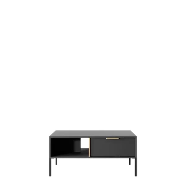 Czarne, metalowe nóżki nadają lekkości i stabilności, a praktyczne szuflady pozwalają utrzymać porządek bez kompromisów. To idealny wybór dla tych, którzy szukają stolika kawowego z charakterem i duszą – takiego, który wpisze się w codzienne rytuały z filiżanką kawy.