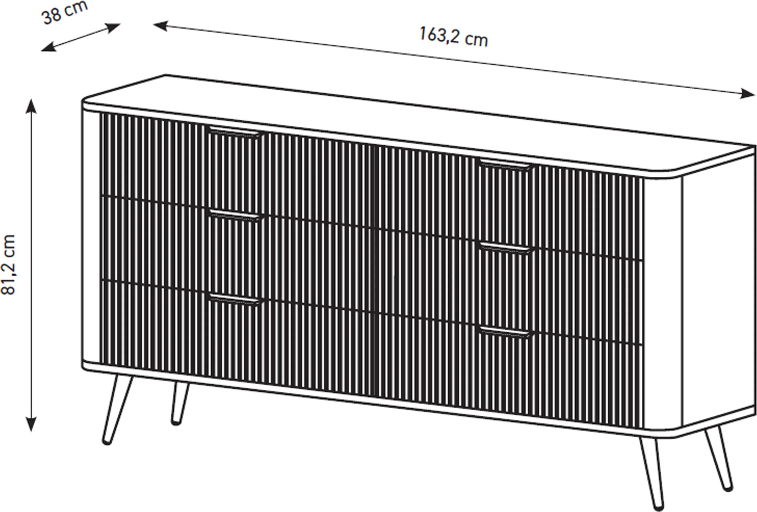 - Wymiary: szerokość 163 cm, głębokość 38 cm, wysokość 81 cm
