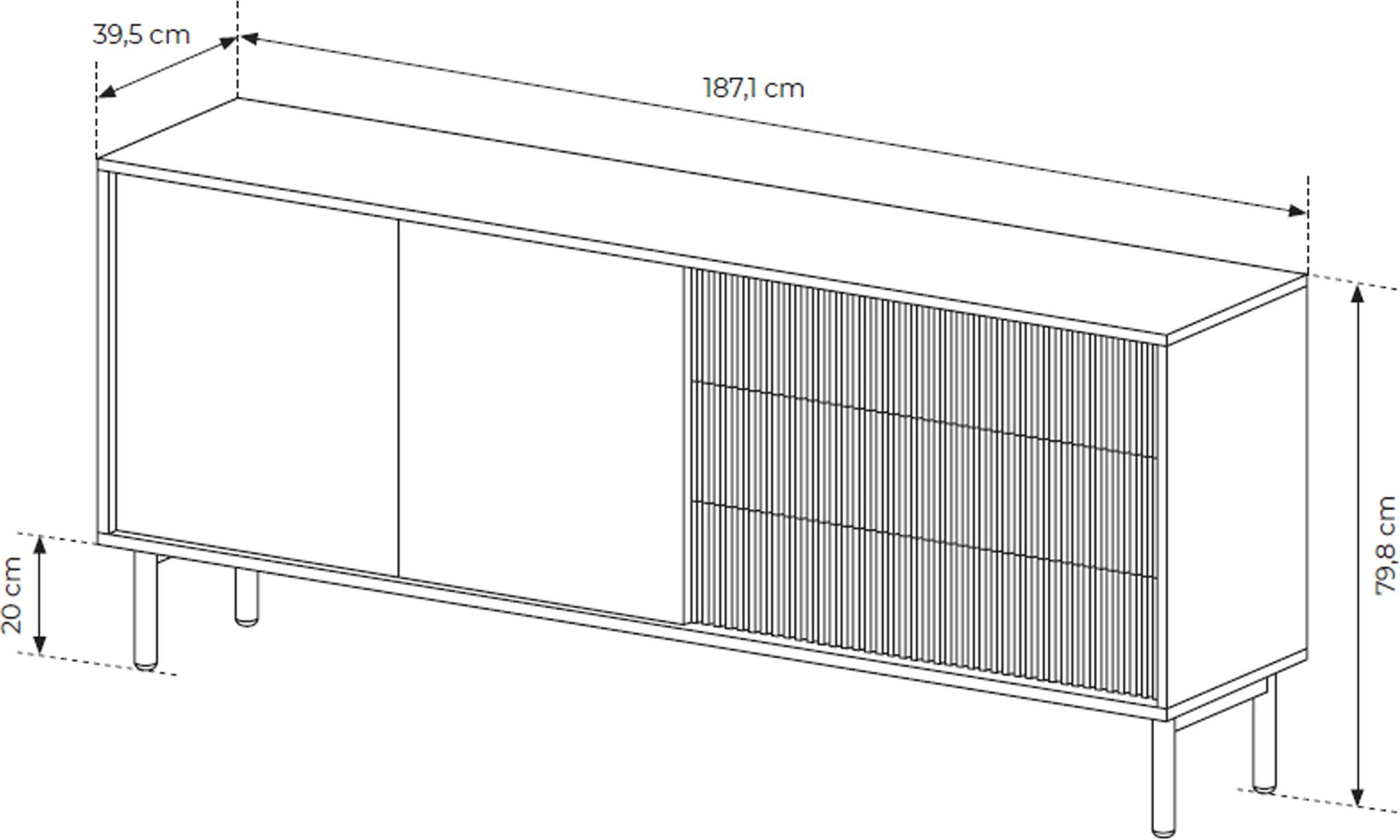 Dzięki wymiarom 187,1x79,8x39,5 cm TAMORIS zmieści się nawet w mniejszych przestrzeniach, oferując przy tym pojemność typową dla większych mebli. To idealna propozycja dla tych, którzy szukają stylowego, ale praktycznego rozwiązania do przechowywania.