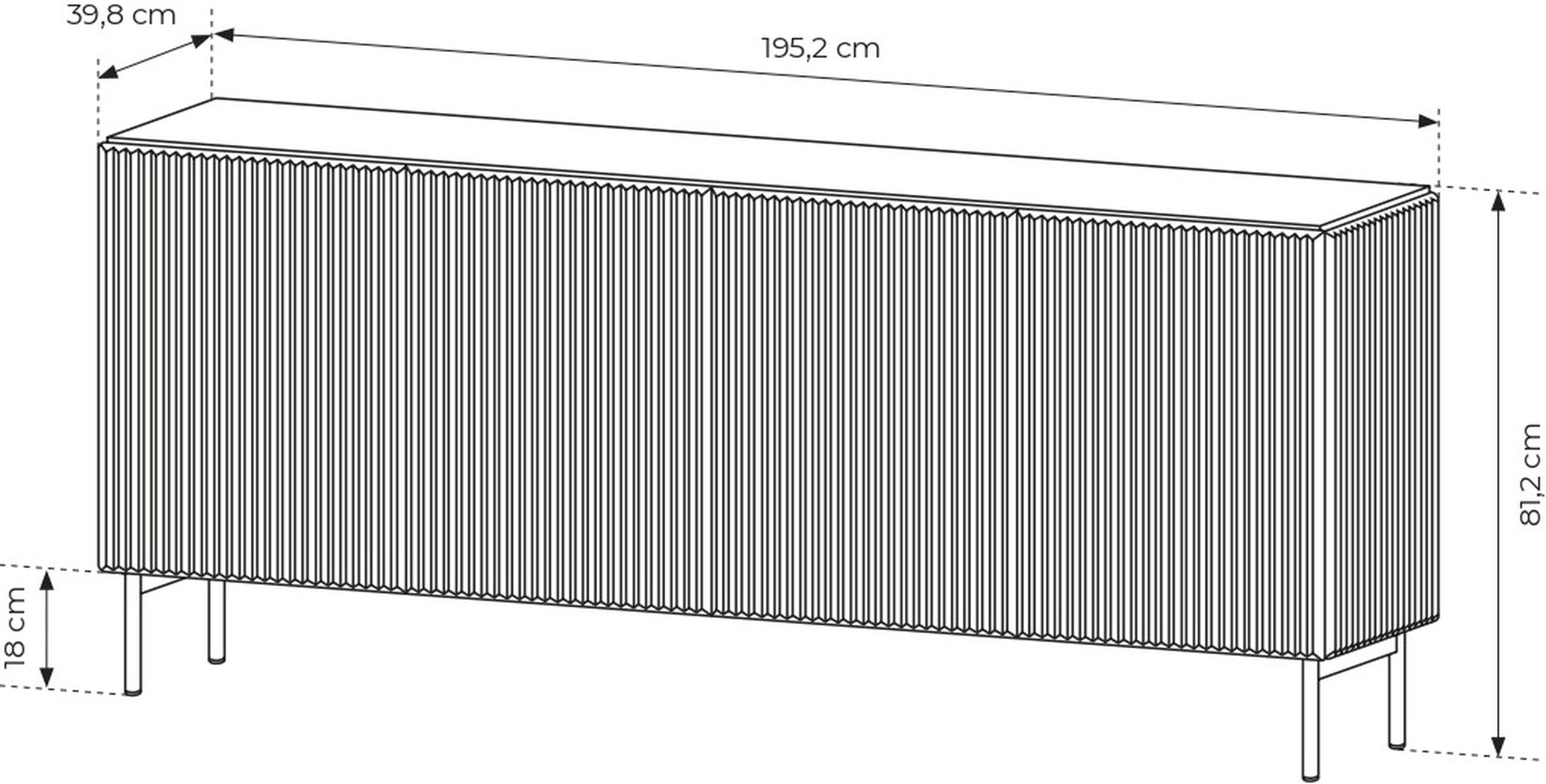 - Front: ryflowana płyta MDF 18 mm, kolor kaszmir