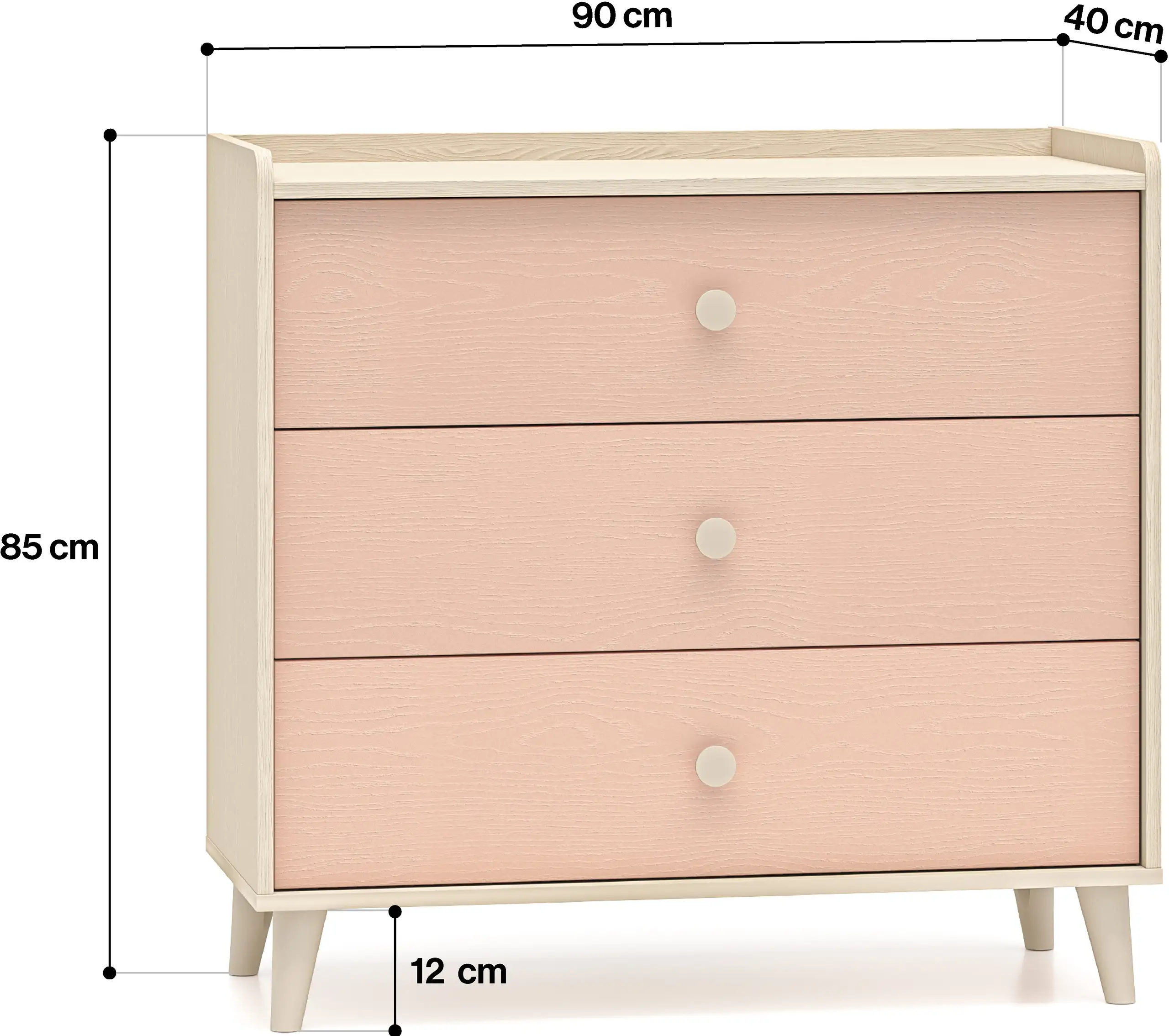 Komoda 90 cm na nóżkach z szufladami do pokoju dziecka MERLO