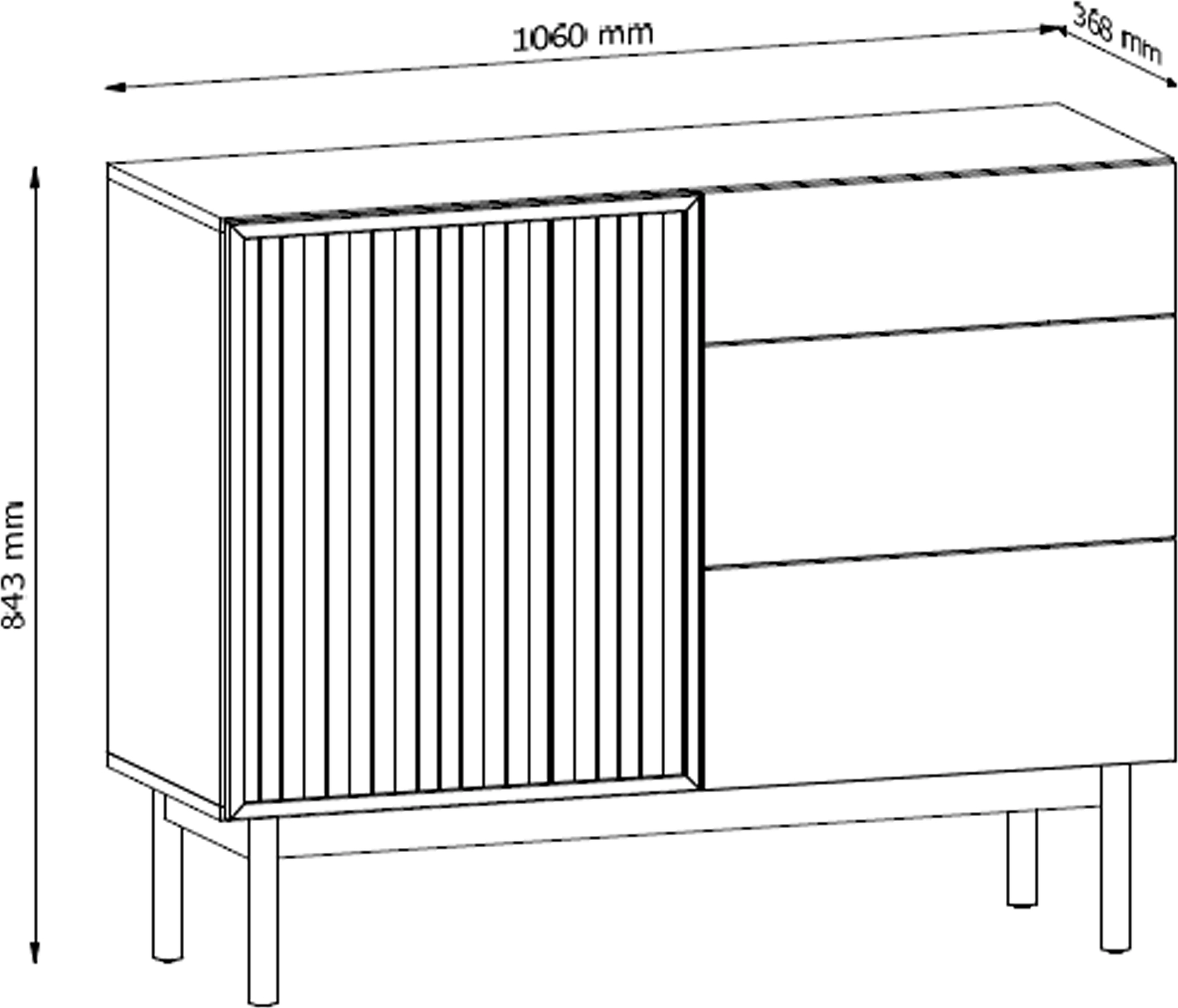 Komoda do salonu SOLVO o szerokości 106 cm to połączenie funkcjonalności i nowoczesnego designu z nutą elegancji. Ryflowane fronty w odcieniu dąb Cremona przyciągają wzrok i tworzą trójwymiarowy efekt, który odmieni każde wnętrze. Dzięki systemowi push to open oraz praktycznym szufladom i szafce, mebel doskonale sprawdzi się do przechowywania odzieży, dokumentów czy codziennych drobiazgów.