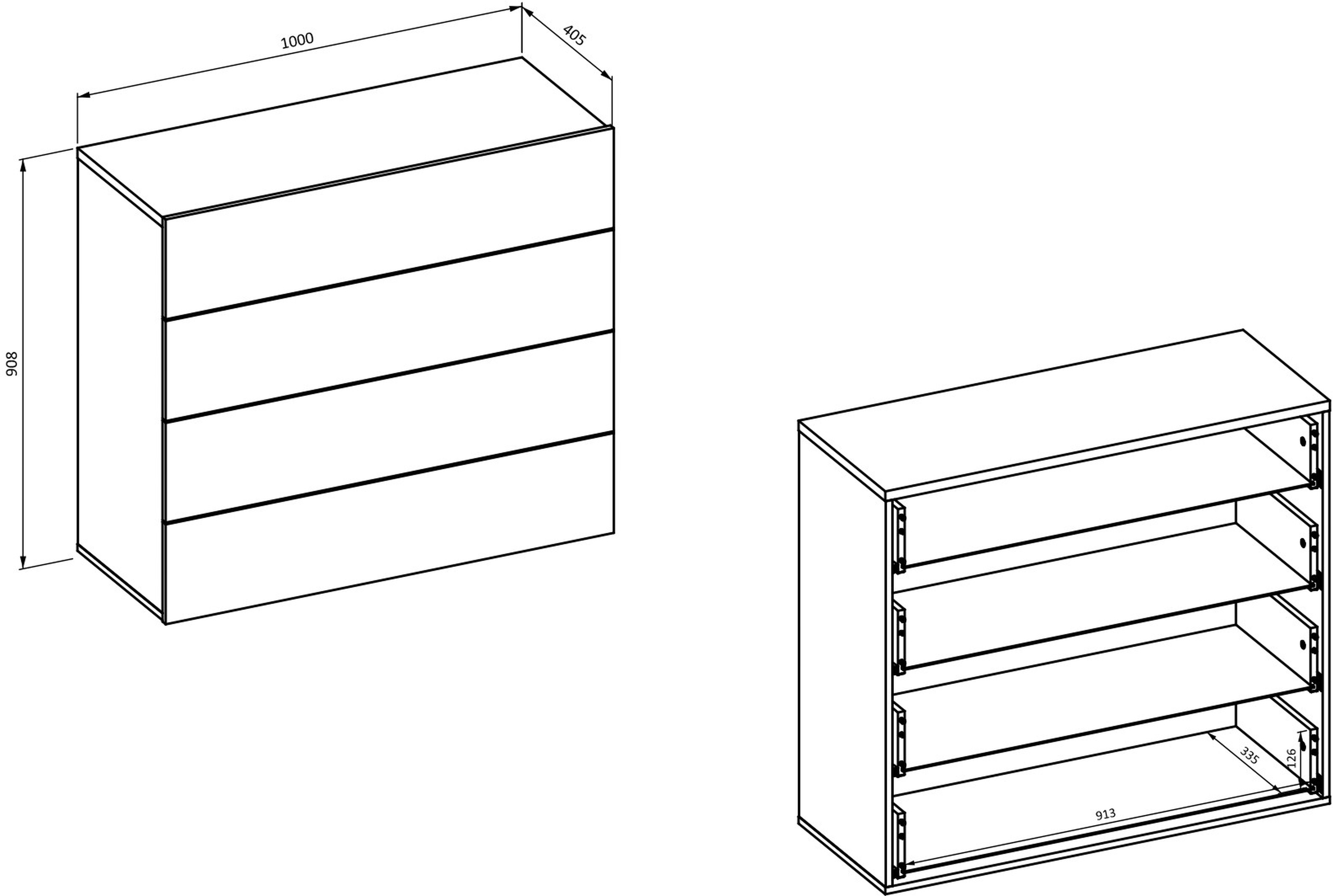 - 4 pojemne szuflady – praktyczne miejsce do przechowywania, które pomaga zachować porządek