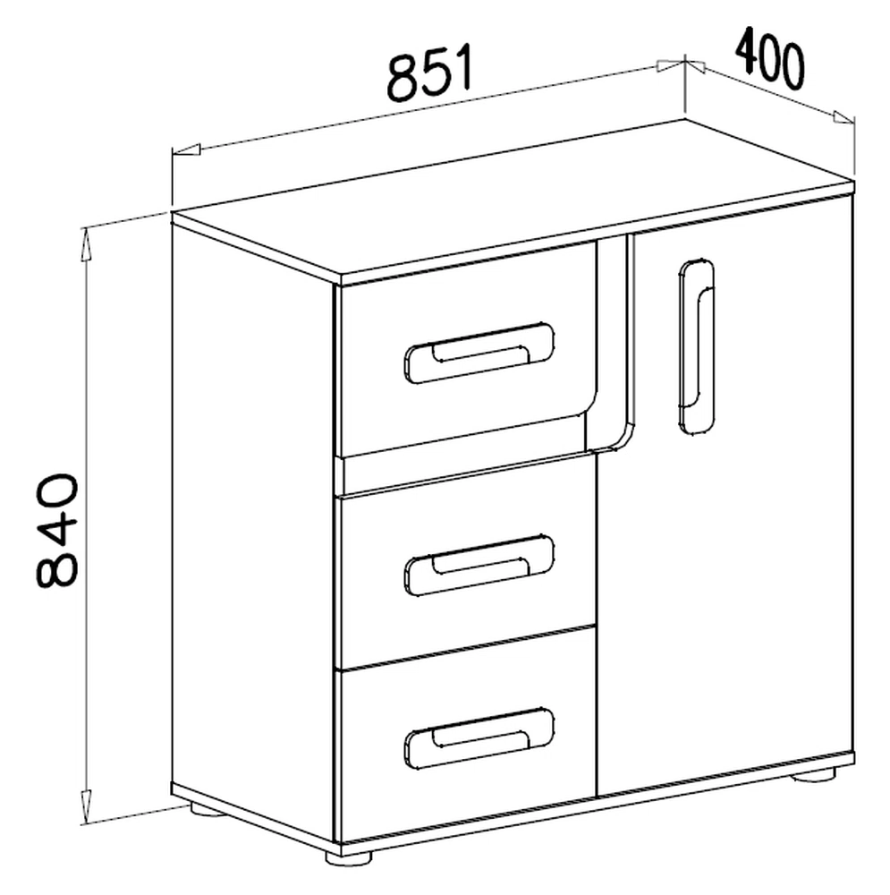 Komoda młodzieżowa z szufladami drzwi APETITO
