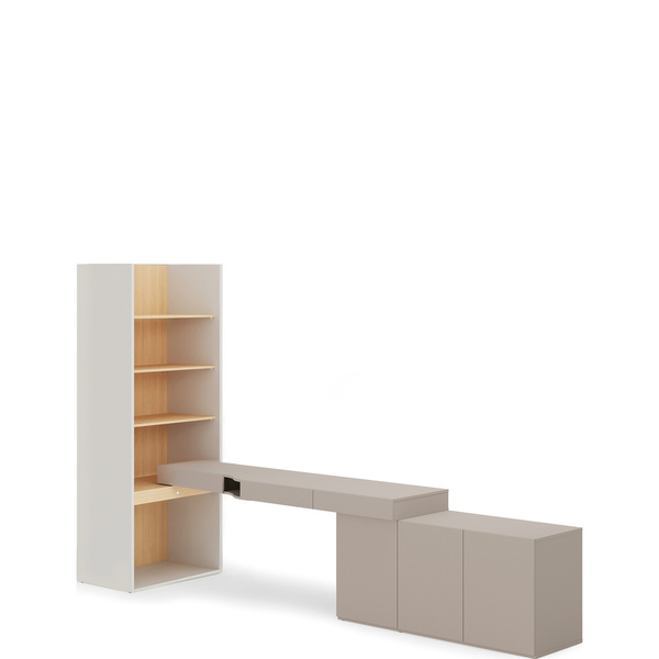 Zestaw mebli młodzieżowych WOOW to przemyślane połączenie nowoczesnego designu i codziennej wygody. Składający się z trzydrzwiowej komody, biurka prawego oraz praktycznego kontenerka, zapewnia kompleksowe wyposażenie pokoju ucznia i gracza. Duży blat biurka daje przestrzeń na naukę, komputer, a także rozwijanie pasji – wszystko w modnej, młodzieżowej stylistyce.