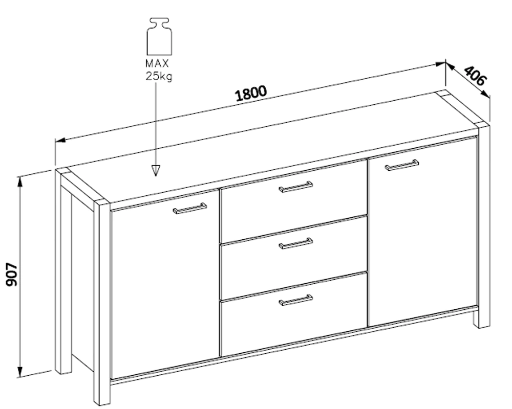 - Obrzeża komody zostały zabezpieczone przed uszkodzeniami mechanicznymi okleiną ABS.