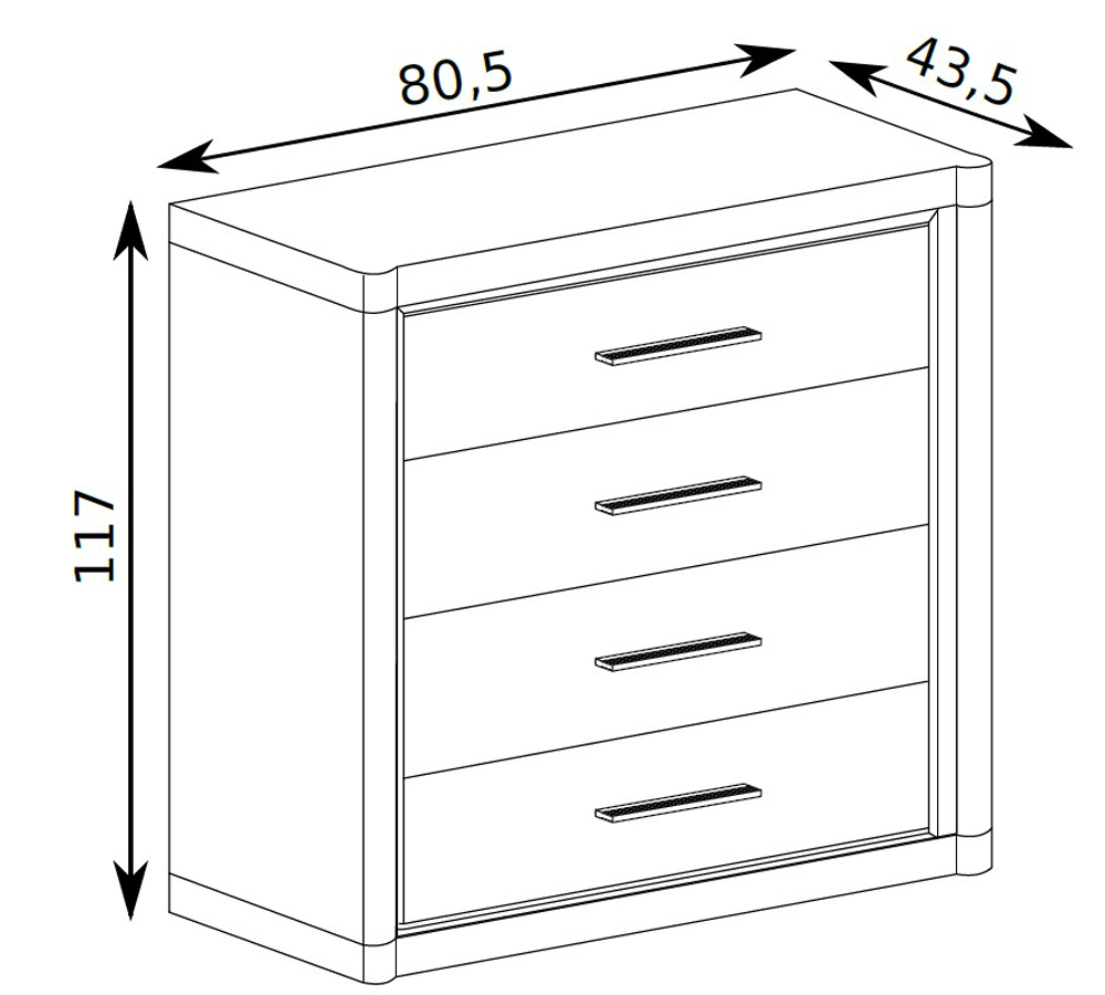 Komoda DENEA została wyposażona w cztery pojemne szuflady, które pozwolą ci przechować niezbędne akcesoria oraz część garderoby. Natomiast nowoczesna stylistyka w jakiej została wykonana sprawia, że znajduje uznanie we współczesnych aranżacjach salonów.