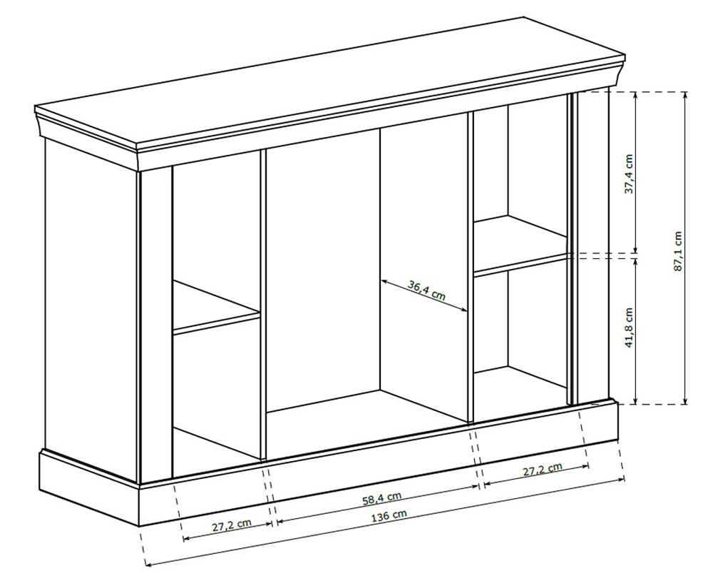- Drzwi komody zostały umieszczone na metalowych zawiasach z cichym domykiem.