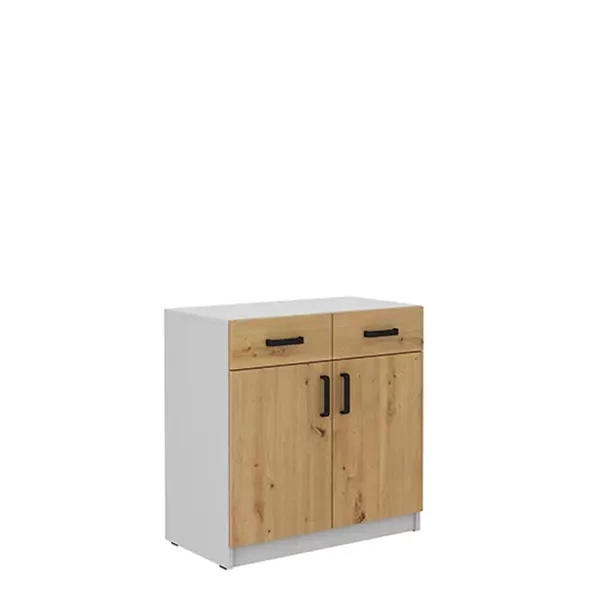 - Korpus oraz front komody wykonano z solidnej płyty laminowanej.