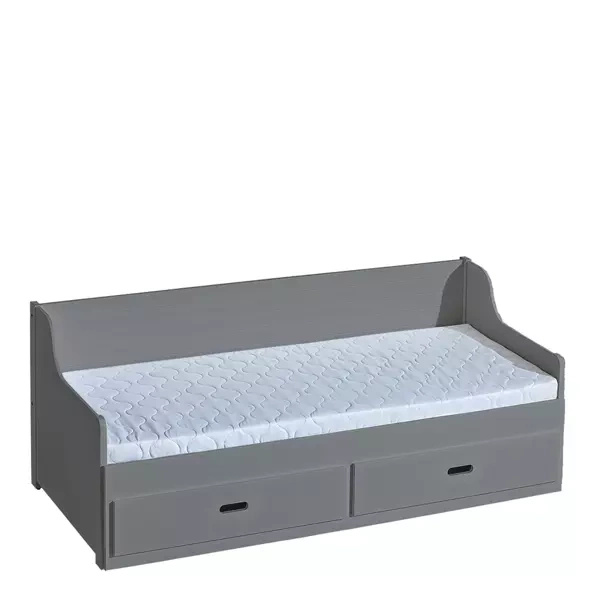 • Pod siedziskiem umieszczony jest obszerny pojemnik na pościel wykonany z płyty laminowanej. Pojemnik świetnie sprawdzi się do przechowania poduch oraz koców.