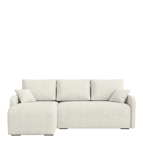 Tkanina boucle, którą obity jest narożnik, to kwintesencja nowoczesnego designu i elegancji. Jej charakterystyczna, pętelkowa struktura przypominająca futro baranka dodaje wnętrzu przytulności, a jednocześnie jest niezwykle wytrzymała i odporna na codzienne użytkowanie. To materiał, który nie tylko wygląda świetnie, ale również jest łatwy do utrzymania w czystości.