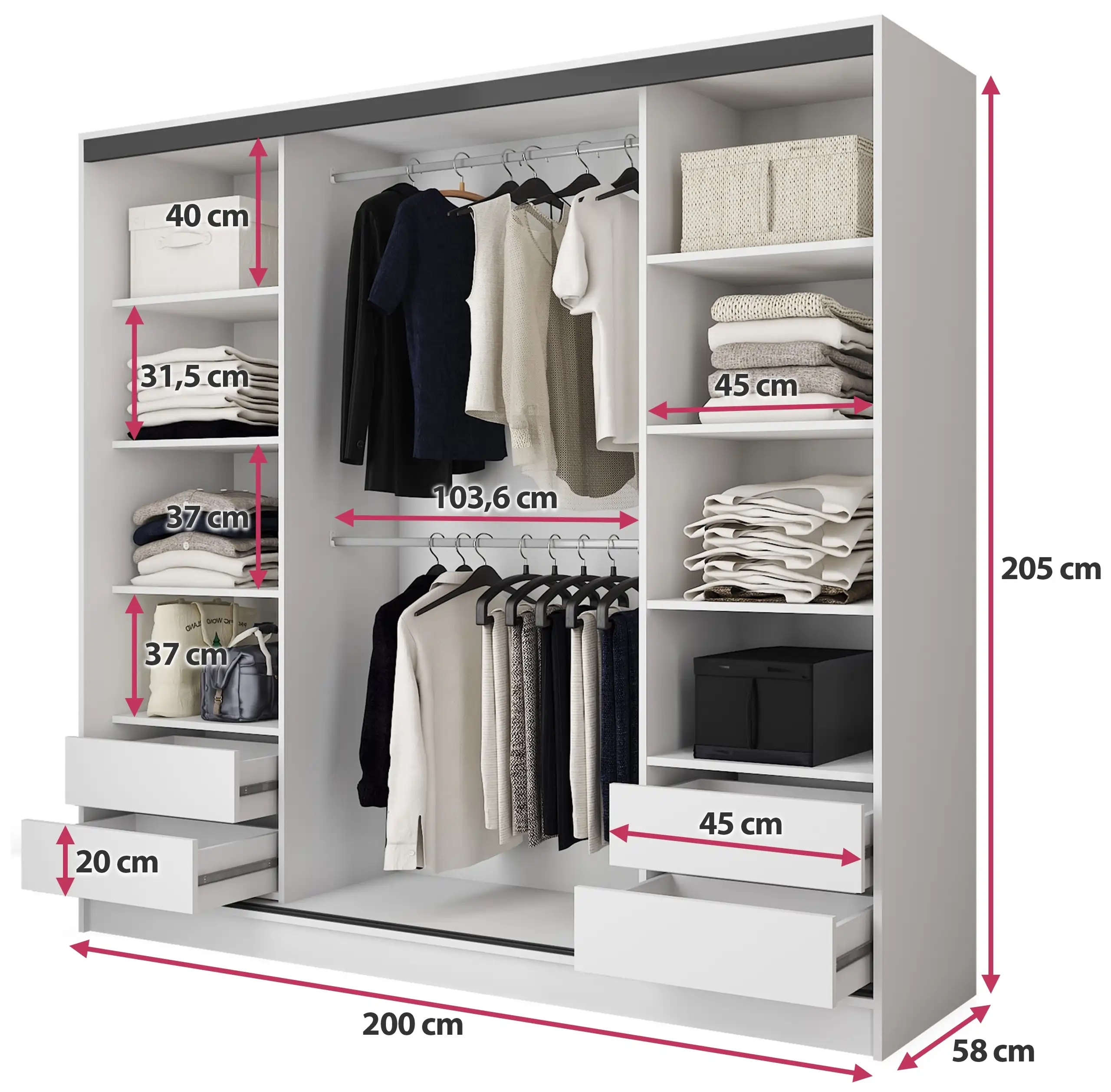 Przemyślany układ wnętrza ułatwia organizację rzeczy osobistych. Jakość zgodna z moimi oczekiwaniami. Szafa przesuwna, która doda nowoczesności każdemu wnętrzu.