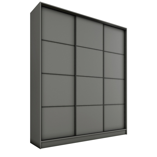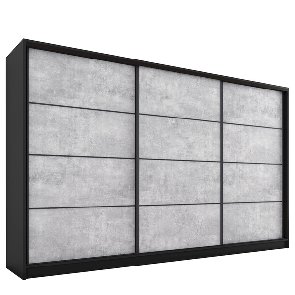 - Szafa po rozpakowaniu posiada gładki front. W zestawie dołączamy listwy widoczne na wizualizacji, które należy przykleić samodzielnie wraz z dołączonym szablonem. W przypadku rezygnacji z przyklejenia listw fronty pozostaną gładkie.