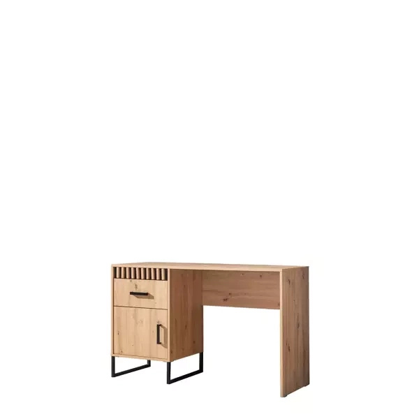 Wykonane z najwyższej jakości materiałów, to biurko jest trwałe i stylowe, a jednocześnie daje poczucie lekkości i przestrzeni. Wysokie metalowe nóżki, dodają niepowtarzalnego charakteru, zapewniają stabilność i cieszą oko nowoczesnym, minimalistycznym designem.