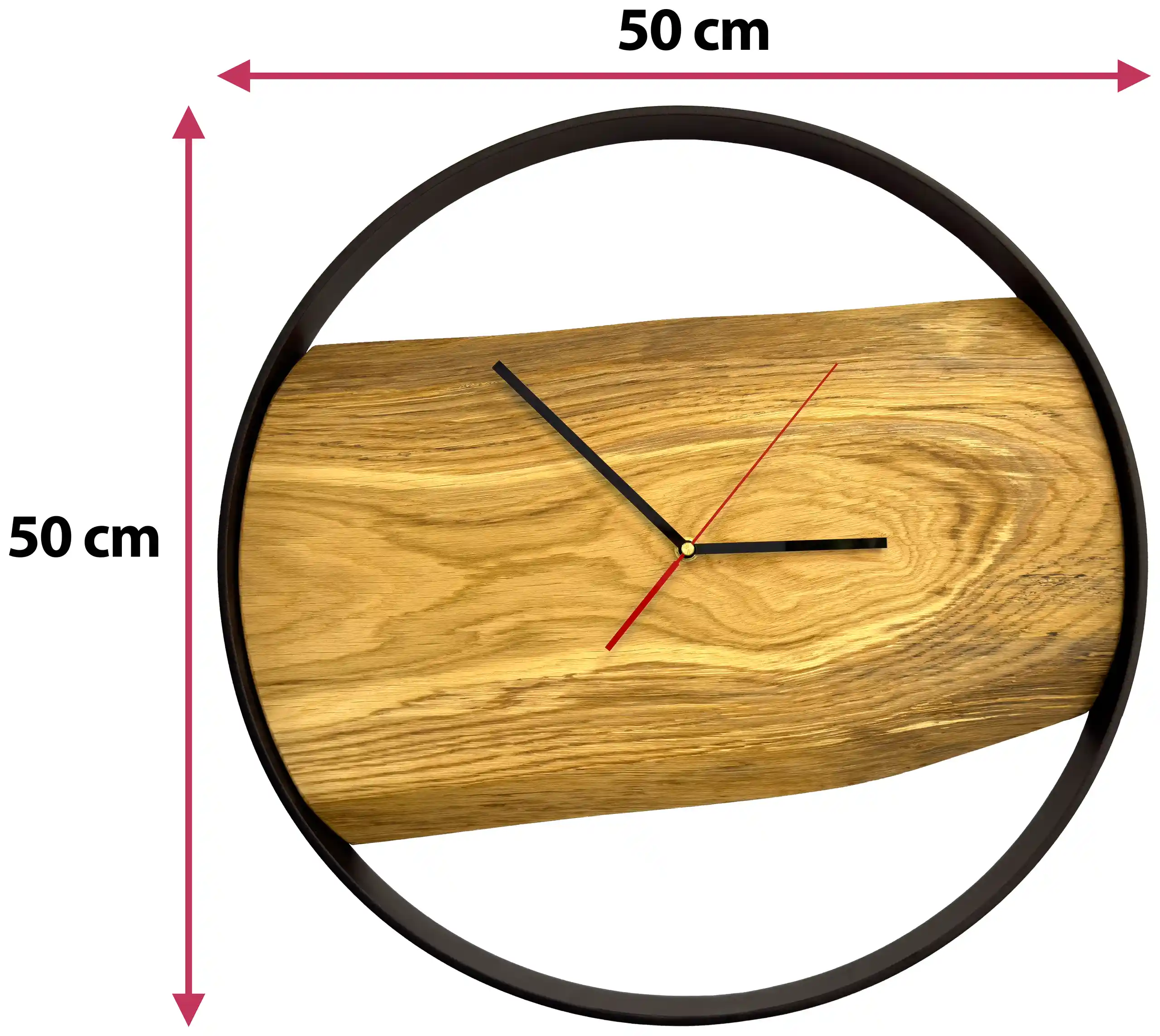Loftowy zegar ścienny dębowy 50 cm RAW