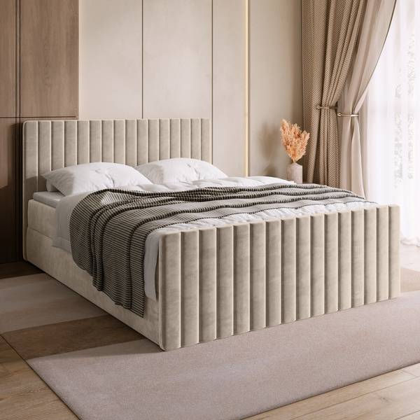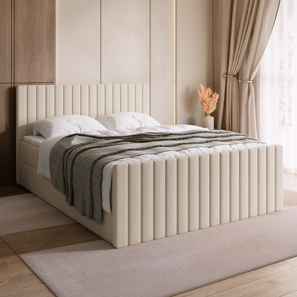 Łóżko kontynentalne DREAM DUO o wymiarach 160x200 cm to propozycja dla osób ceniących wygodę i elegancki wygląd sypialni. Wysoki, tapicerowany zagłówek z ozdobnym wzorem nie tylko zdobi wnętrze, ale również zapewnia wygodne oparcie w czasie odpoczynku.