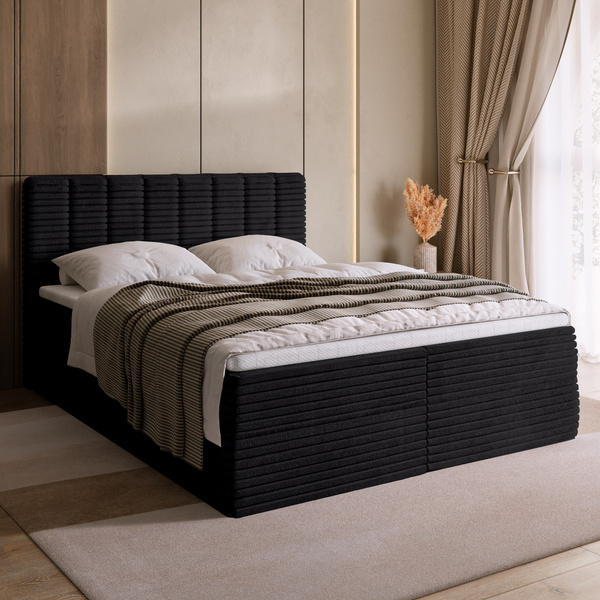 Łóżko kontynentalne 160x200 cm DENVER DUO to idealne rozwiązanie dla osób, które szukają połączenia nowoczesnego designu z codziennym komfortem. Model ten wyróżnia się podwójnym zagłówkiem o dekoracyjnym układzie szerokich, pionowych paneli – dzięki niemu całość prezentuje się niezwykle elegancko i harmonijnie w każdej sypialni.