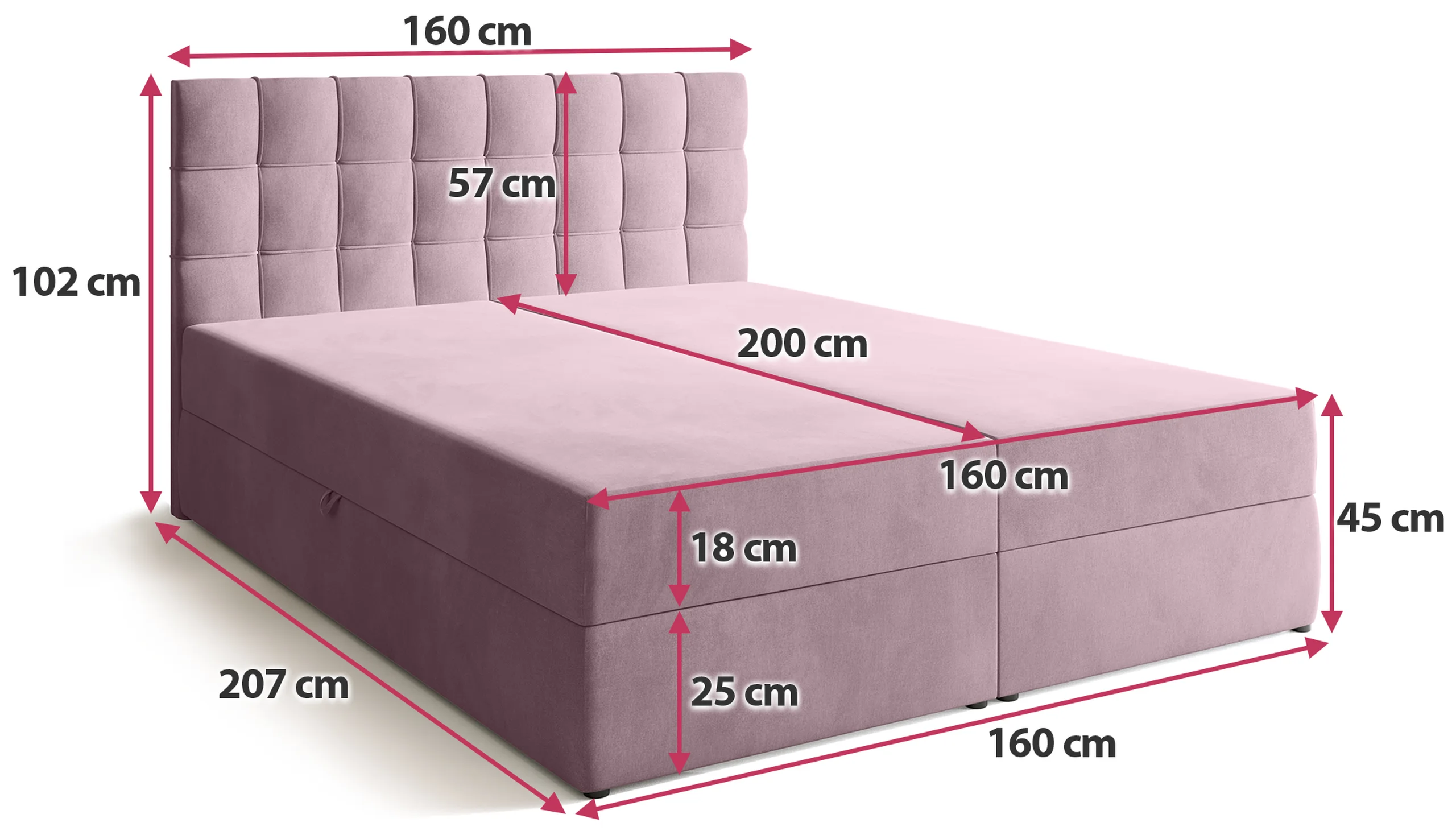 Opinie o Łóżko kontynentalne 160x200 cm z pojemnikiem DETROIT pudrowy róż
