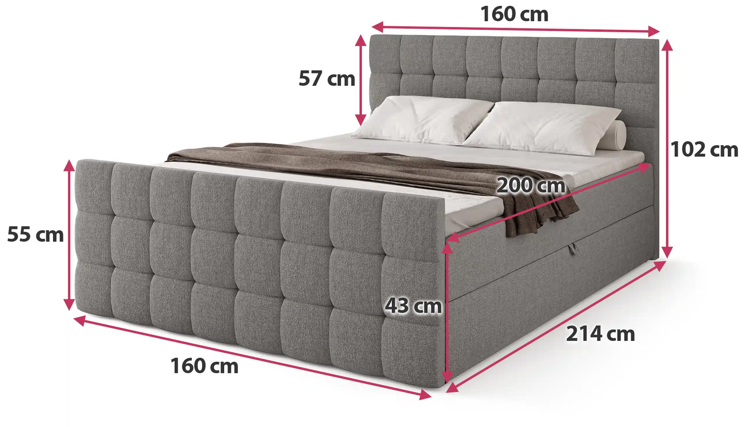 Łóżko kontynentalne 160x200 cm DAKOTA DUO to idealne rozwiązanie dla osób, które szukają połączenia nowoczesnego designu z codziennym komfortem. Model ten wyróżnia się podwójnym zagłówkiem o dekoracyjnym układzie równo pikowanych kwadratów – dzięki niemu całość prezentuje się niezwykle elegancko i harmonijnie w każdej sypialni.