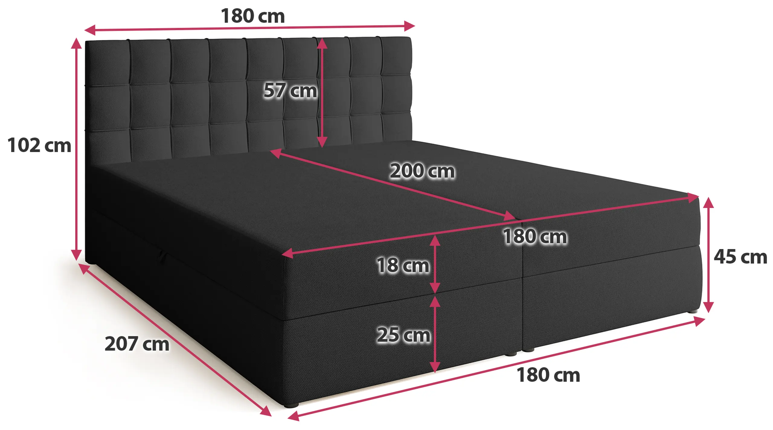 Opinie o Łóżko kontynentalne 180x200 cm z pojemnikiem na pościel DETROIT pikowane