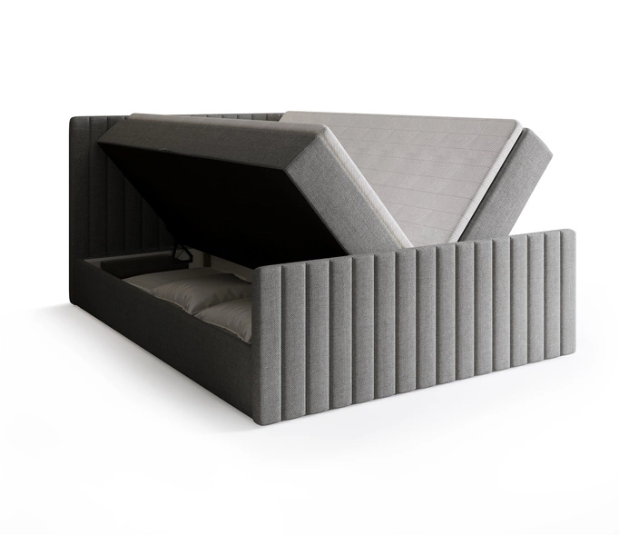 Opinie o Łóżko kontynentalne szare 160x200 cm z pojemnikiem na pościel DREAM DUO