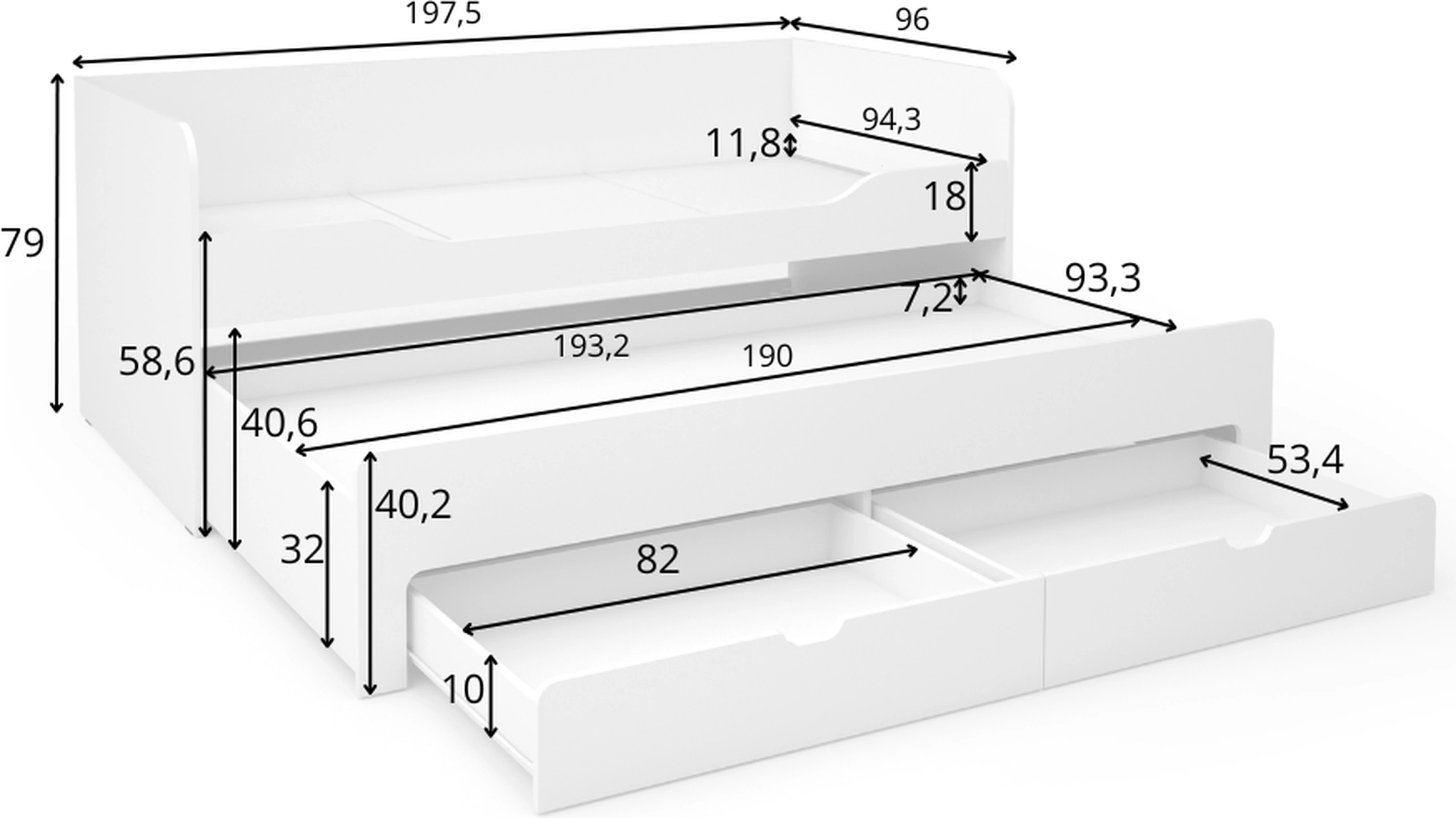 Łóżko młodzieżowe PUEBLO 197x96 cm to idealne rozwiązanie do pokoju nastolatka lub rodzeństwa, które dzieli wspólną przestrzeń. Dzięki wysuwanej dolnej części zyskujesz dwa wygodne miejsca do spania o wymiarach 90x190 cm – bez potrzeby kupowania drugiego łóżka! Nowoczesny design w białym kolorze świetnie komponuje się z każdą aranżacją wnętrza.