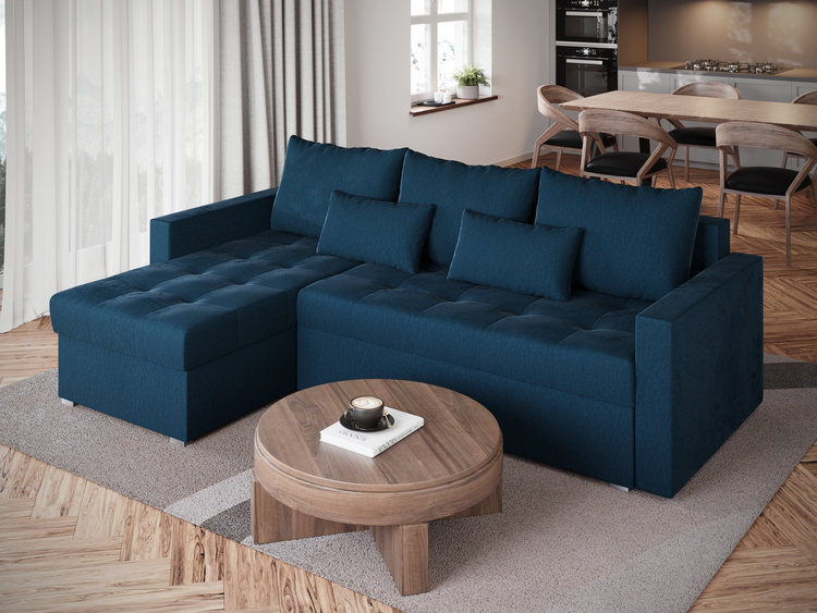 - Szuflada łóżka została osadzona na prowadnicach kulkowych z bezuchwytowym mechanizmem otwierania PUSH TO OPEN.
