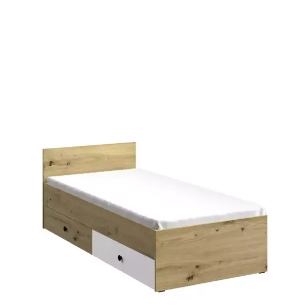 - Łóżko zostało wyposażone w drewniany stelaż jednak nie posiada materaca. Odpowiedni materac znajduje się poniżej, w sekcji "POELCANE".