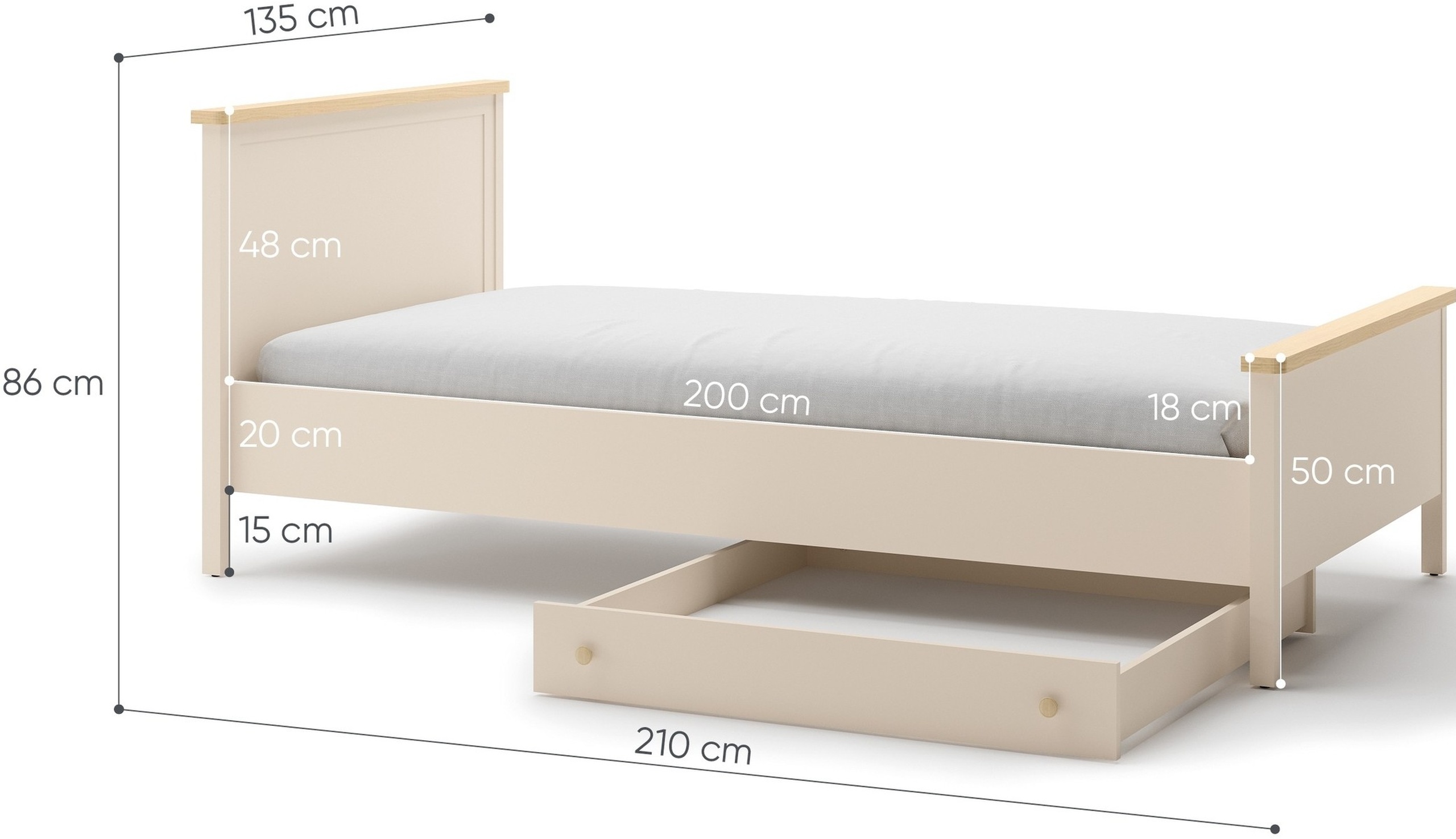 Uwaga! Istnieje możliwość doposażenia łóżka w szuflady na pościel. Można to zrobić przechodząc do sekcji "Kup razem" która znajduje się pod galerią zdjęć produktu.