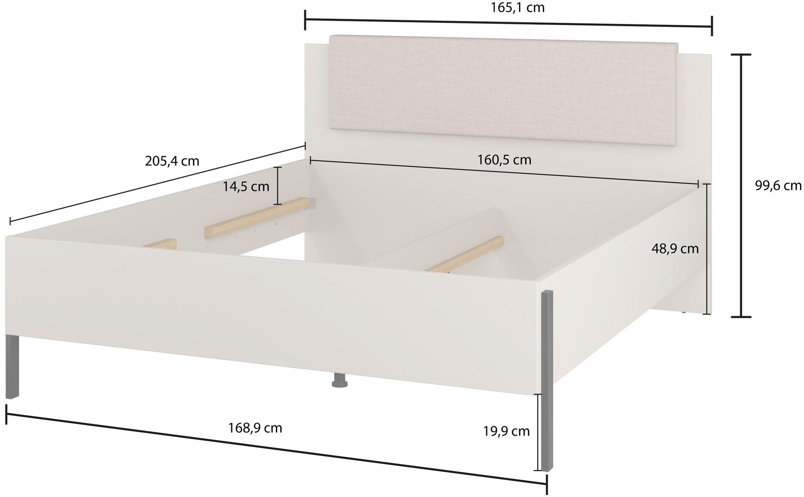 - Wymiary zewnętrzne: szerokość 168,9 cm, długość 205,4 cm, wysokość 99,6 cm