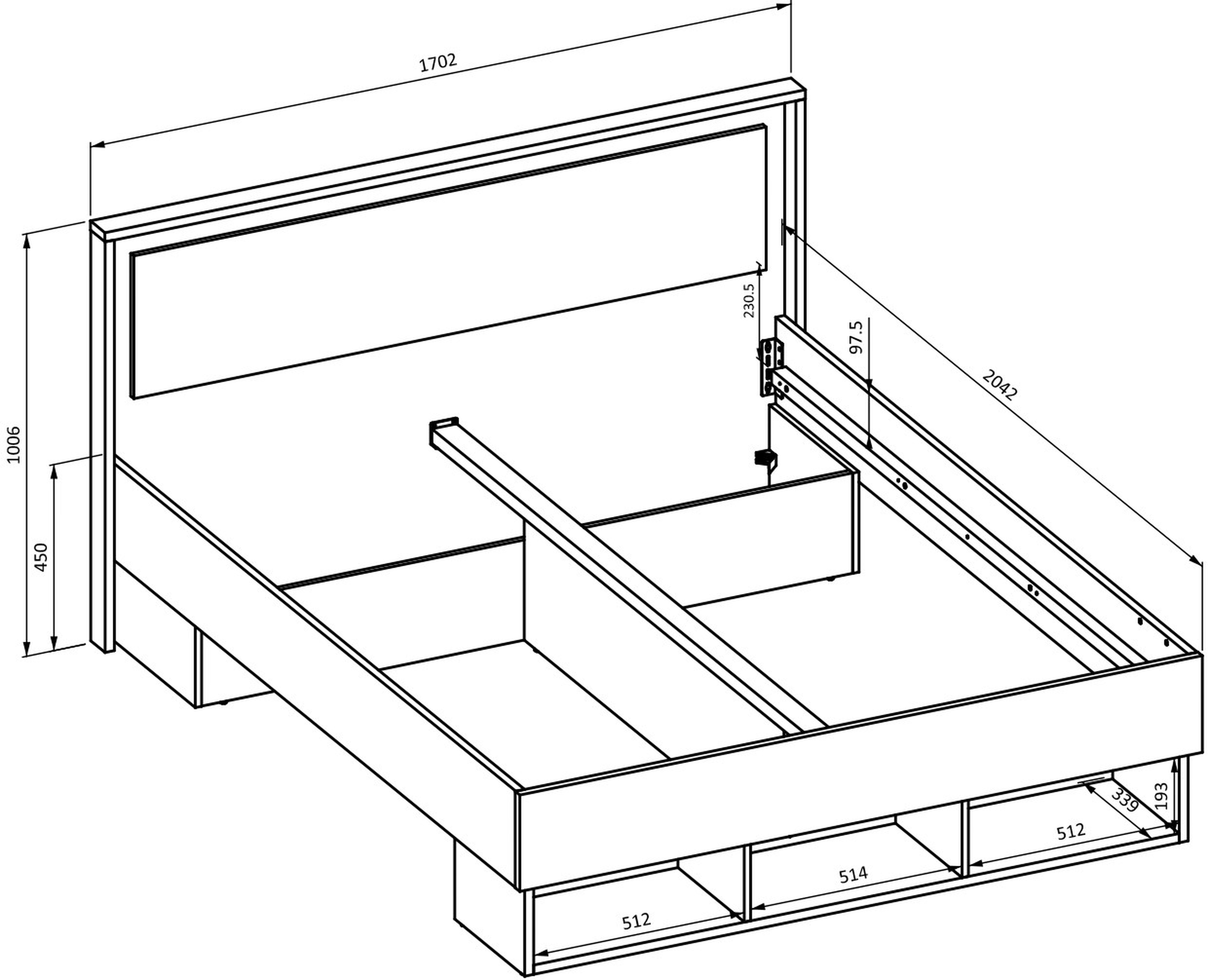 Łóżko skrzyniowe 160x200 cm z półkami IMPRESSIO