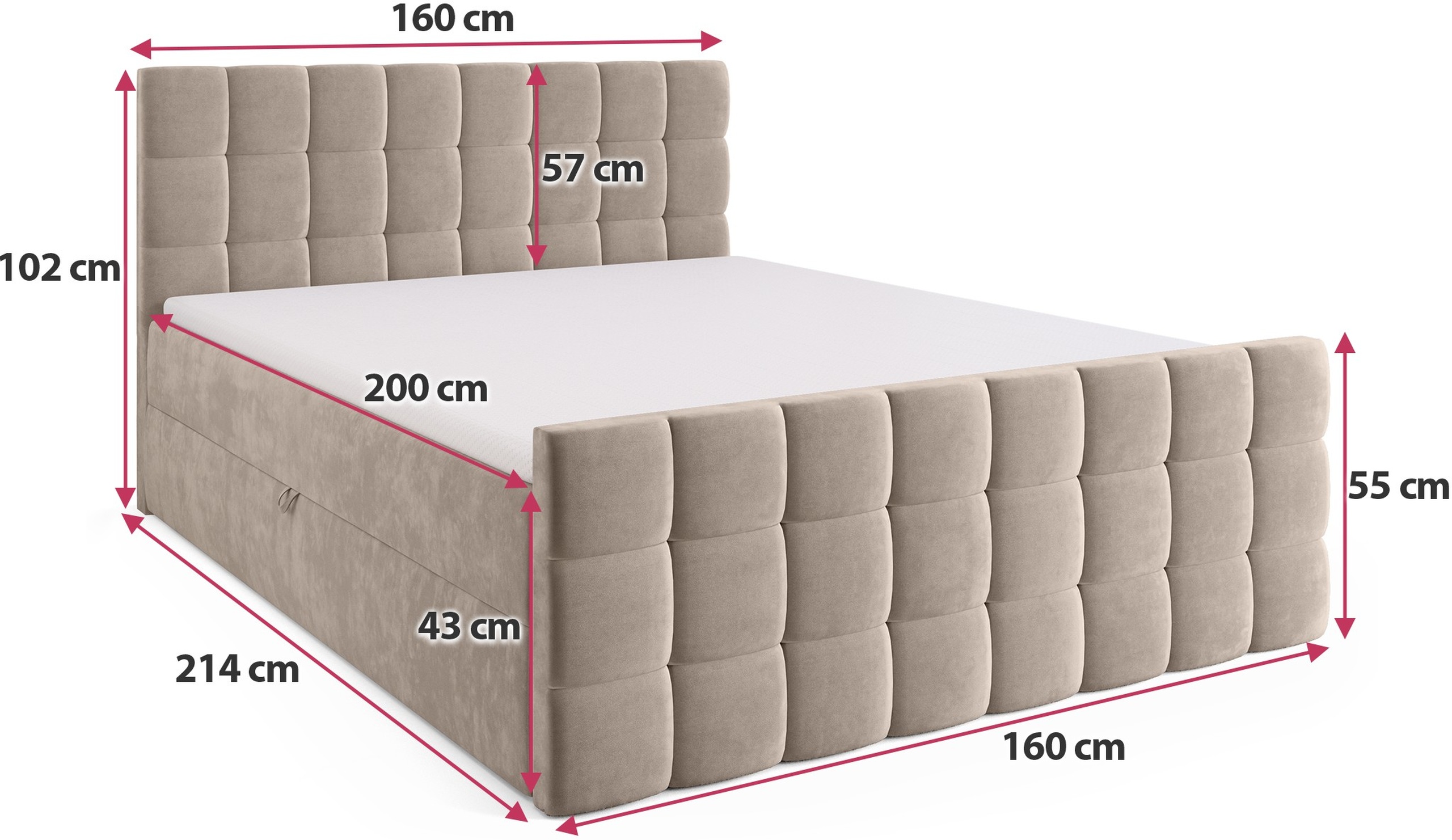 Łóżko kontynentalne 160x200 cm DAKOTA DUO to idealne rozwiązanie dla osób, które szukają połączenia nowoczesnego designu z codziennym komfortem. Model ten wyróżnia się podwójnym zagłówkiem o dekoracyjnym układzie równo pikowanych kwadratów – dzięki niemu całość prezentuje się niezwykle elegancko i harmonijnie w każdej sypialni.