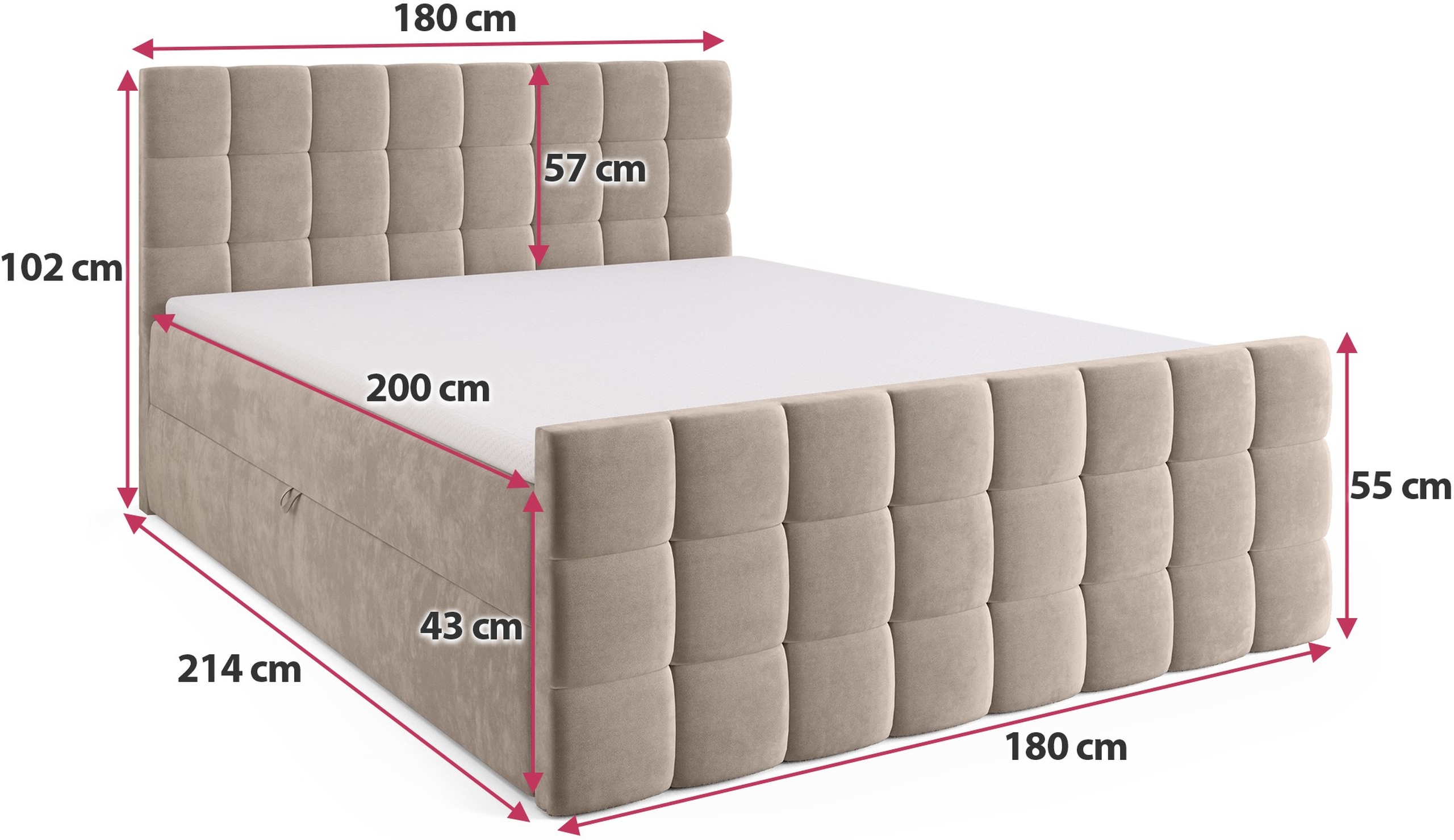 Łóżko kontynentalne 180x200 cm DAKOTA DUO to idealne rozwiązanie dla osób, które szukają połączenia nowoczesnego designu z codziennym komfortem. Model ten wyróżnia się podwójnym zagłówkiem o dekoracyjnym układzie równo pikowanych kwadratów – dzięki niemu całość prezentuje się niezwykle elegancko i harmonijnie w każdej sypialni.