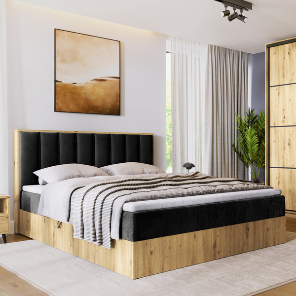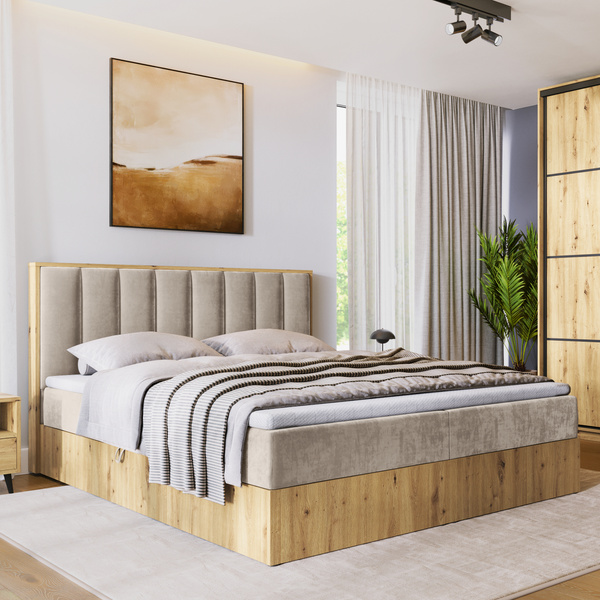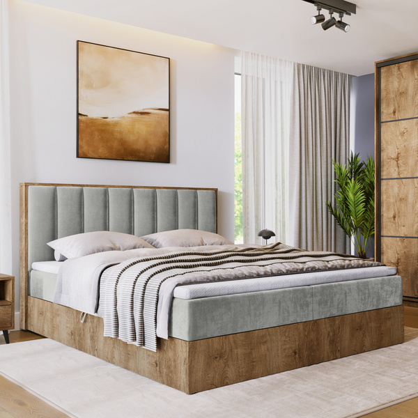 - Łóżko w standardzie wyposażone jest w stelaż z ramą wykonaną z metalu, podnoszoną na siłownikach gazowych. W tej wersji stelaż składa się z 36 brzozowych listew sprężynujących. Uchwyt służący do podnoszenia stelaża w kolorze losowym, element niewidoczny. Obciążenie maksymalne to 200 kg.
